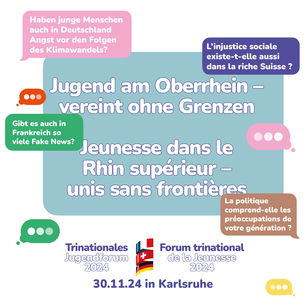 Du bist zwischen 15 und 26 Jahre alt und interessierst Dich für die Themen Mobilität und Bildung, Umwelt, und Demokratie in Europa? Dann nimm am trinationalen Jugendforum teil und diskutiere mit anderen jungen Menschen aus Deutschland, Frankreich und der Schweiz. Denn Deine Stimme zählt!