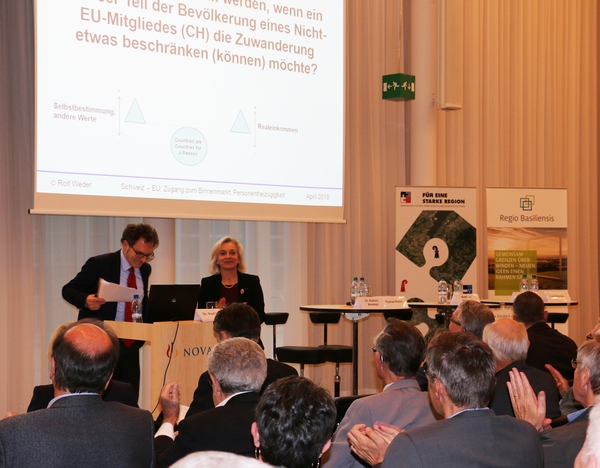 Reto Wolf, Präsident der Vereinigung für eine Starke Region Basel/Nordwestschweiz, betonte in seinem Schlusswort, dass eine starke regionale Wirtschaft auch künftig auf die Personenfreizügigkeit angewiesen ist. Dies gilt gerade in der Nordwestschweiz mit der trinationalen Metropolitanregion Basel. Die Akzeptanz der Personenfreizügigkeit zu erhöhen, bleibt darum eine wichtige Aufgabe.