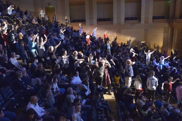 Der französische Choreograf und Künstler Sylvain Groud bringt den Klassiker des Minimalismus in Bewegung und lädt dazu Menschen aus der Region ein. Unter der Führung von fünf Tanzprofis sollen Laien aus den drei beteiligten Ländern die Empfindungen, die Steve Reichs hypnotischer Klanglandschaft schafft, in tänzerische Bewegungen umsetzen und als Bindeglied zwischen Musikerinnen und Musikern und dem Publikum fungieren. Die Idee ist, dass sich schliesslich auch das Publikum von der Choreografie mitreissen lässt und somit ein kollektives Musikerlebnis entsteht, bis niemand mehr weiss, wer eingeweiht und wer einfach nur mitgerissen ist.